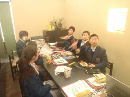 それぞれのブースでみんなでお弁当です。午前中頑張ったからお腹もすいたでしょう。