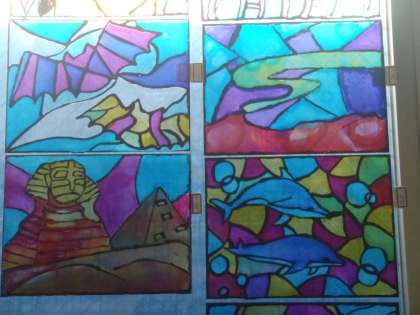 廊下の窓に貼られる作品が増えてきました。全部そろうのが楽しみです。
