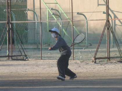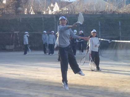 風が冷たく、手も悴みラケットコントロールも難しい中でも元気に頑張ってます。