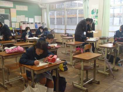 いよいよ明後日10日は私学の入試。3年生は雪の中登校して,真剣に頑張ってます。