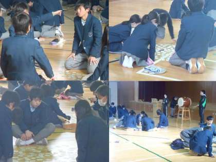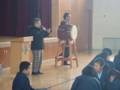 2時間目の総合から,1年生の百人一首大会が始まりました。太鼓がいかにも古典的な雰囲気を醸し出してますね。大会の迫力のシーン?や結果などについては,また続報します。