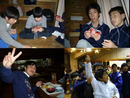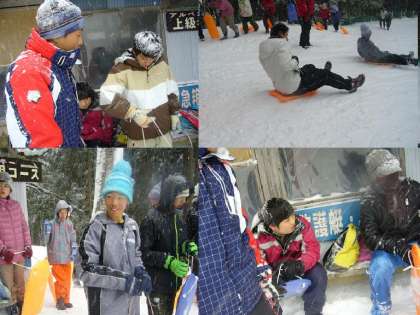 夜は各部屋で寛ぎながら,全体のレクレーションでもビンゴゲームで活躍しました。次の日はみんなで「そり」で雪滑りです。