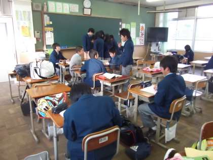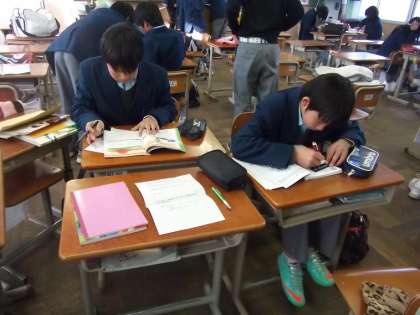 1年生は3・4・5組の教室でそれぞれ理科,社会,国語・英語と分割教室で実技教科を学習しています。