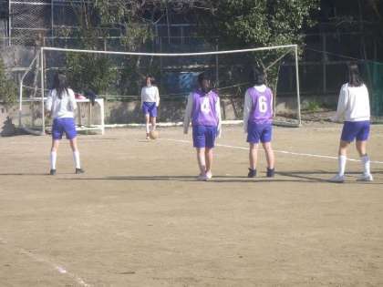 3年生の女子はグラウンドでサッカーです。普段やり慣れていないけど、楽しくボールを追いかけます。
