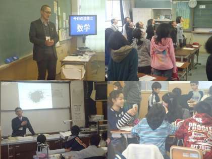 授業体験で山階南小は5号館、百々小は3号館です。写真は数学・英語・音楽・理科・家庭科です。