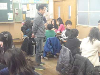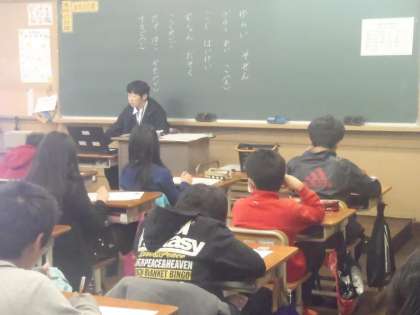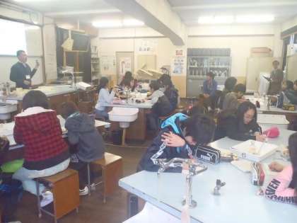 4号館で百々小の体験授業。国語・家庭科・理科室でのようすです。