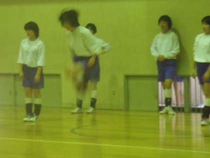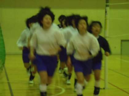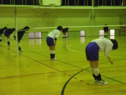 体育館では女子バレー部が活動中でした。まだウォーミングアップの最中でしたが,顧問の先生から,「目的をもってきちんと,しっかり体を動かしなさい」と注意が飛ぶと動きがみるみるよくなっていました。