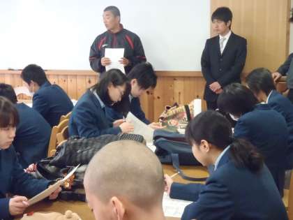放課後キャプテン会議の様子です。文化部,体育部の14の部活キャプテンが勢ぞろいして,9日の生徒会オリエンテーションと部活動紹介の打ち合わせです。今年の部活動担当の先生は,東田先生と深見先生です。
