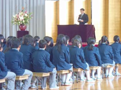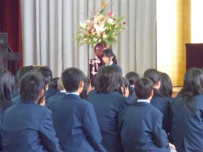 学校長の式辞,生徒代表粟野さんの歓迎の言葉,新入生代表上野くんの誓いの言葉です。