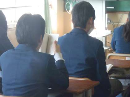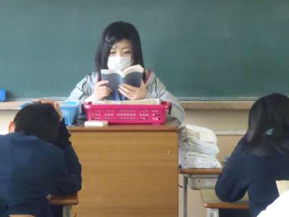担任の先生に「うちはもう本を読んでいます」と聞いたので,3年3組に本を読みに行きました。さすがに3年生で,中玉利先生をはじめ,各自黙々と読書をしています。