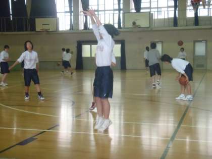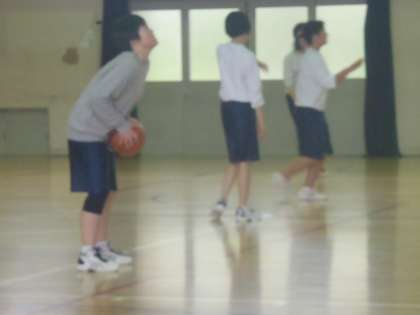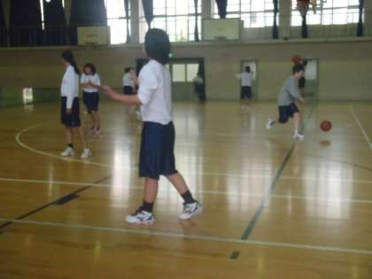 体育館の一方では,女子バスケットが練習です。顧問の先生の鋭い声が体育館に響いていました。