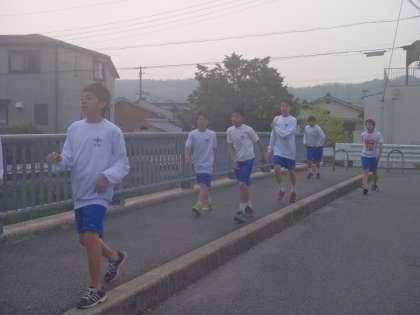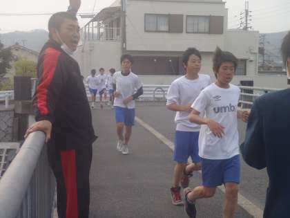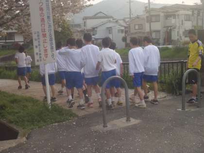 サッカー部は今日はグラウンドの割り当てがなく,堤防でのランニングを中心とした練習です。1年生も元気に走っていました。