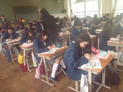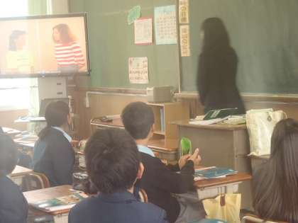 4組は英語の授業です。口の動かし方を意識して,何度もリピートします。