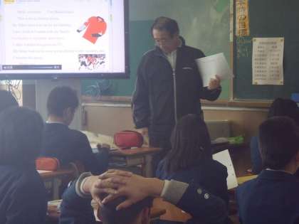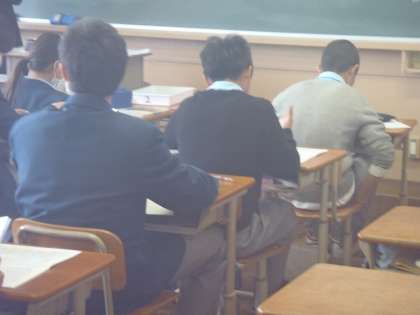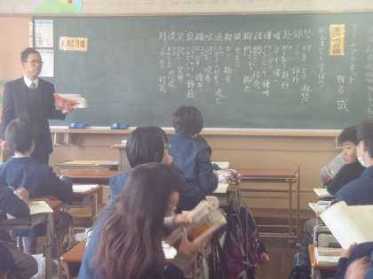2年誠意の教室です。松良先生の国語(少人数分割授業)と小林先生の英語の授業です。