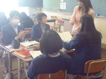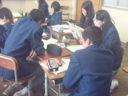 国語の分割授業のもう一つは後藤先生です。授業の後半はちょうどグループになって考えあう場面でした。