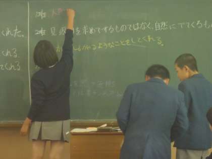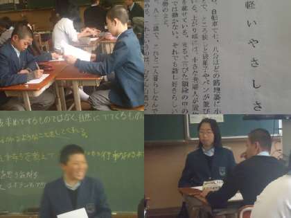 修学旅行に向けて,思いやりや優しさをテーマに学習しました。資料は落合恵子さんのエッセイから「軽いやさしさ」というものを使っています。