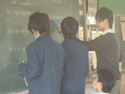 数学の授業ですが歯科検診のため,早く戻った人から練習問題を解き,答えを黒板に書いています。たくさん前に出てきていて「やる気」がみえます。