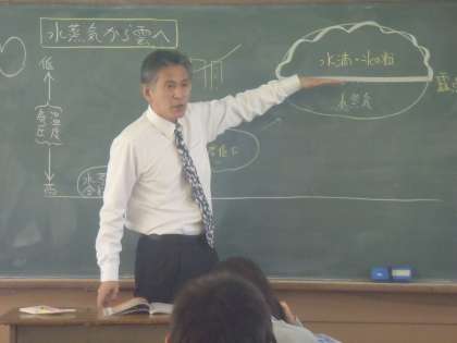 理科の授業では水蒸気と雲の関係を学んでいました。