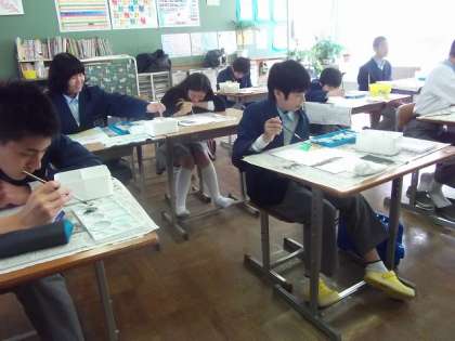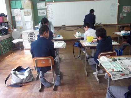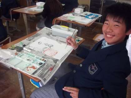 8組は美術で「点描画」に挑戦です。色とりどりに作っています。