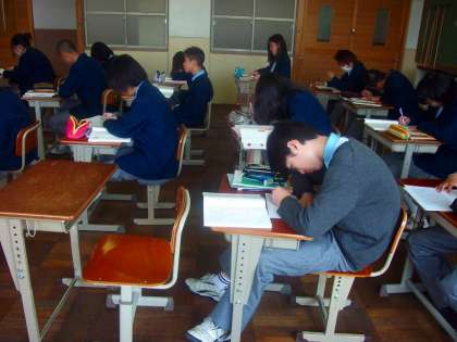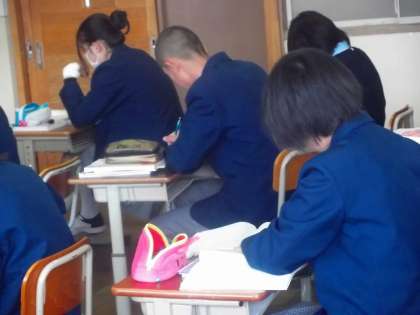 2年生は分割の授業です。人数が少ない分,本読みや発表,ノートの点検などきめ細かくしていただいてます。