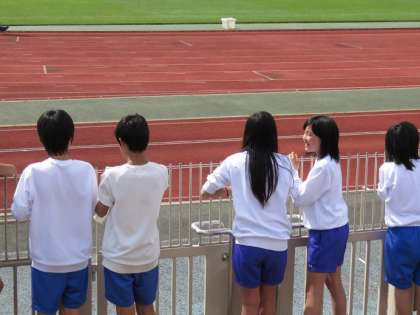 陸上の大会は朝早くに集合して,夕方の閉会式まで。出場する人はもちろん,応援の人も時間の使い方が大切です。