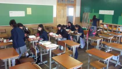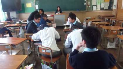 国語の教室は男子が頑張っていました。数学の教室は深見先生が会議のため,下西先生が教えています。