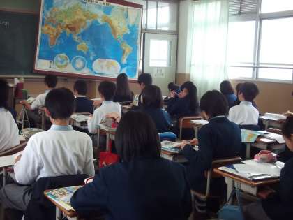 1年4組の社会科です。世界の国々のうち,島国と内陸国をおさらいしてます。日本の位置を表す言い方,ユーラシア大陸,アジア州,東アジア・・・・。途中モンゴルをどこに含めるか,ちょっと怪しげな一幕も。