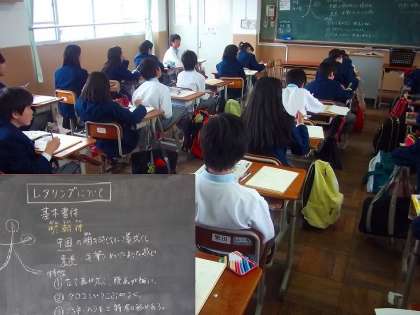 1年生は新田先生の担当で,今日はレタリングについて学んでいます。