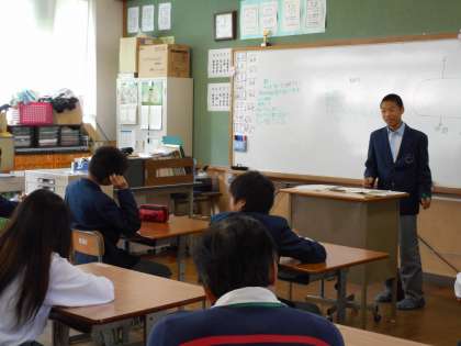 学活では体育委員の板山君が中心になって,体育大会の種目説明をしています。