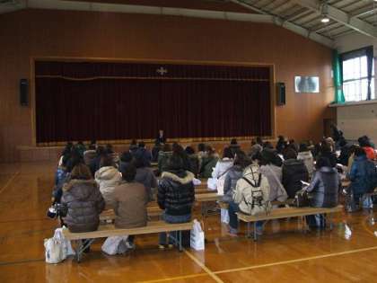 1月28日(木)の午後1時40分より,本校体育館にて「平成22年度 新入学説明会」を開催しました。冷え込みが厳しい体育館でしたが,多くの保護者の方々に参加をしていただきました。有り難うございました。今後,入学に関して何か不明な点があれば遠慮なく問い合わせてください。多くの新入生の入学をお待ちしております。