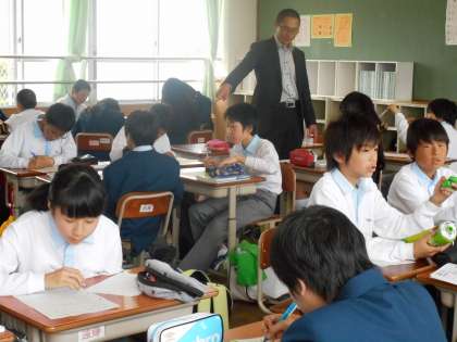 1組の数学の時間,後半はテストに向けての学習ですが,まずはグループになって練習問題をやり遂げます。