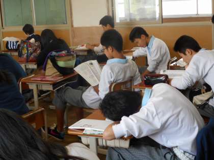 3年1,2組のようすです。今日のテストは理科と数学。朝の学習にも力が入っています。
