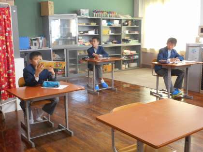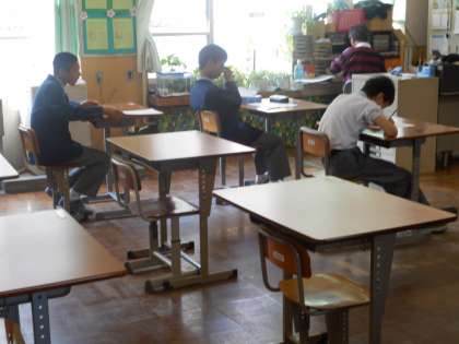 1時間目は理科のテスト。1年生は英語の時間,交流クラスでもテストを受けます。