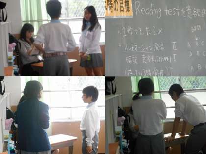 4組の英語の時間は「リーディングテスト」です。練習が終わってテスト開始。「まだ覚えてない!」という声も上がってました。順番を待つ間は静かにプリントをしています。