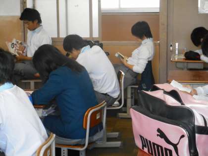 修学旅行前日で落ち着かないかもしれませんが,しっかり本を読みましょうと先生の声。静かに読書に親しんでいます。
