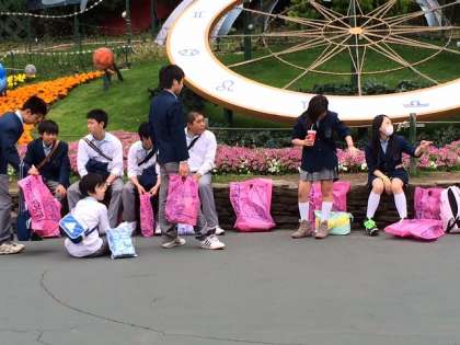 土産袋を抱えて、集合時間に遅れませんように!
