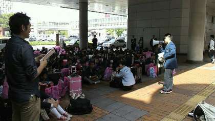 小倉駅の前で解団式を行いました。