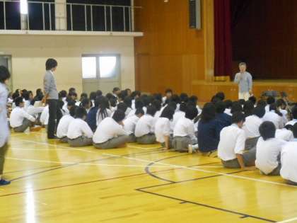 秋の合唱コンクールの話題も盛り込みながら学年集会がありました。