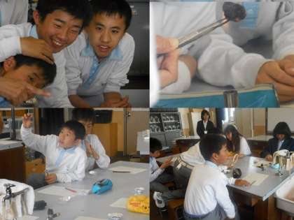 8組では鉄の綿を使って燃焼の実験です。次回は一人一人がガスバーナーを使う予定です。