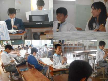 音楽の時間。歌の練習の後は,それぞれが楽器を使って音階の練習です。
