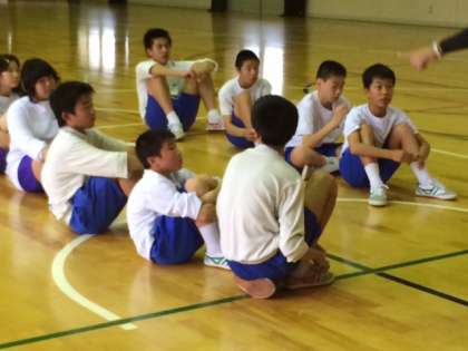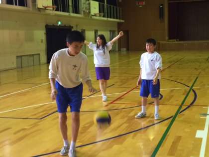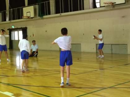 体育館では8組が,6月30日の合同球技大会に向けての練習です。ボールを落とさないで(ワンバウンドまで)何回続けられるか!まだまだこれからです。
