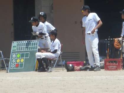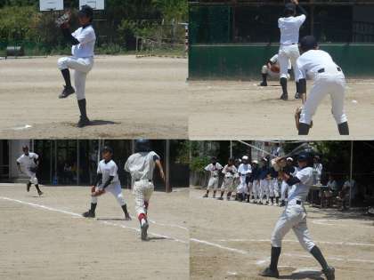 野球部は朝から伏見中学と練習試合でした。写真は二試合目のようすです。