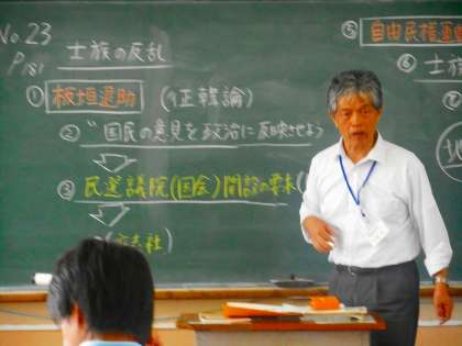 3年生は自由民権運動のところを学習しています。明治時代になり,人物名や重要語句もたくさん出てきます。教える先生にも力が入ります!
