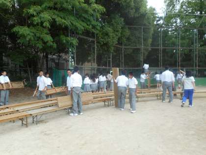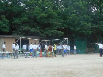 午後からは体育大会の準備です。幸いここまでは雨に降られずに進んでいます。夏の大会も近いため,係りにあたっている生徒以外は,中庭や体育館でクラブ活動も頑張っています。