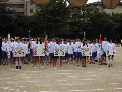みんなは今日の体育大会に向けて,クラスのみんなと準備をしたり,練習をしてきました。クラス一丸となって頑張って欲しいと思います。勝敗にもこだわって,スポーツでは勝つことほど楽しいことはありません。次に自分自身が運動すること,競技することを楽しみましょう。そのためにも手を抜かず全力で競技をしてください。もうひとつ,準備に頑張ってきた係や委員の人,先生方や保護者・地域の方々に対する「感謝の気持ち」を忘れずに一所懸命に取り組んでください。という話をしました。