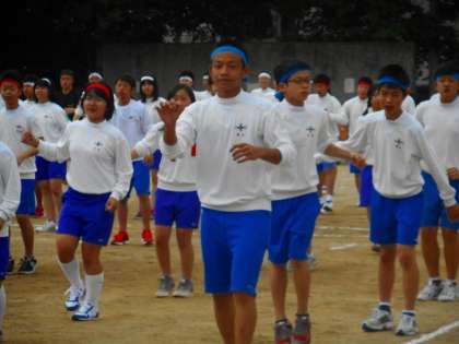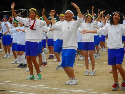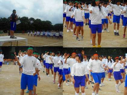 実行委員長,東田先生の合図で準備運動のダンスです。