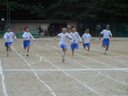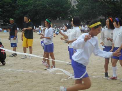 各学年男女の100メートル走と決勝係の3年女子生徒です。