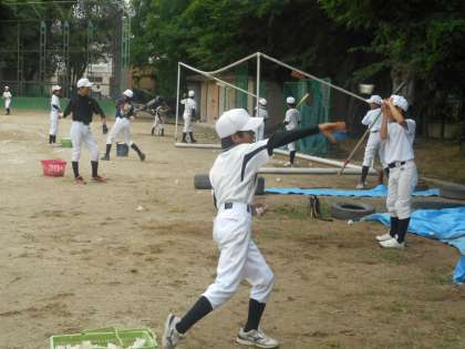 グラウンドでは野球部,サッカー部,ソフトテニス部,駅伝競走部が活動中です。教育相談期間中ですが,しっかり頑張っています。駅伝競走部は週末の土日が夏季大会になります。