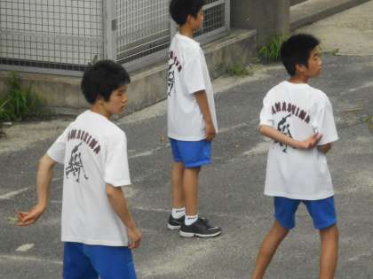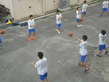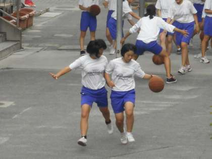 今日の前半は体育館が使えないので,男女とも中庭で練習です。