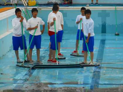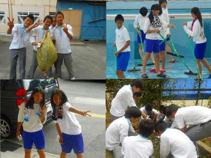 6月13日,全校でクリーンキャンペーンを行いました。学校周辺と校内,プール清掃を分担して行いました。
